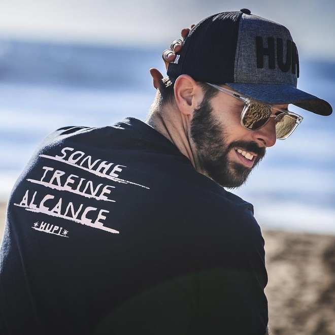 Logotipo da marca HUPI bordado em alto relevo na frente do Boné.