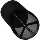 Possui aba curva, fecho em snapback e copa trucker.