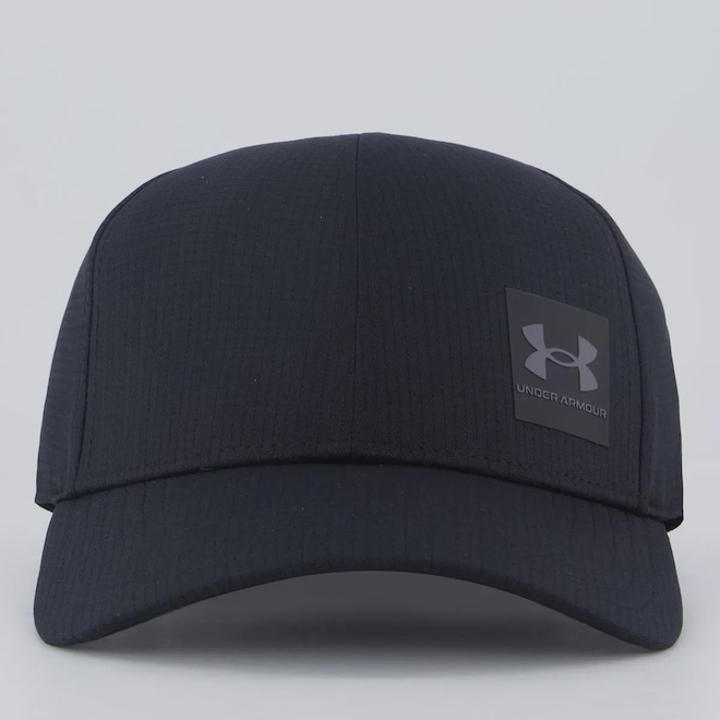 Tecnologias Iso-Chill: Faixa de suor que ajuda a espalhar o calor do corpo, promovendo um toque fresco durante a prática do exercício físico. ArmourVent®: Tecnologia que oferece máxima respirabilidade em um tecido leve, elástico, durável e de secagem rápida. Composição: 100% Poliéster Cor predominante: Preta Peso aproximado: 100 g Ajuste: Fivela de metal Indicado para: Treino Profundidade: 16 cm Logo: Aplicada Origem: Importada Gênero: Masculino Aba: Curva Tamanho único