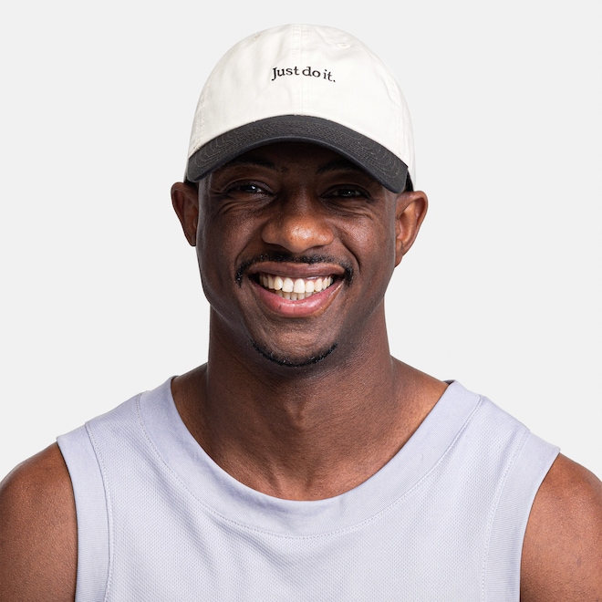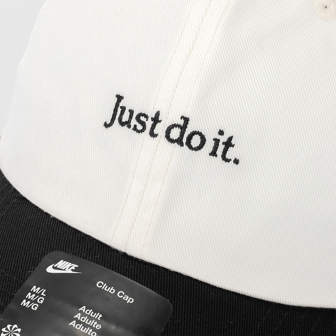 - “Just Do It.” bordado na coroa.