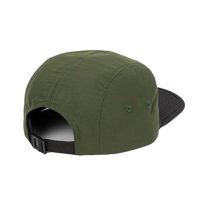 Boné Volcom com fechamento em fivela, modelo 5 pannel desestruturado e bordado Circle Stone frontal.