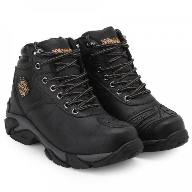 Nome: Bota Adventure Motorcycle Wonder WO19-1050CO. Gênero: Masculino. Indicado para: Dia a dia. Estilo da Peça: Adventure. Composição: Sintético com protetor de bico em borracha. Material Interno: Têxtil acolchoado. Ajuste: Cadarço. Solado: Borracha tratorada. Palmilha: EVA forrada. Língua: Acolchoada. Passante: Em metal.Puxadores na língua e traseira. Peso do Produto: 1051 g (o peso varia de acordo com a numeração). Garantia do Fabricante: Contra defeito de fabricação. Origem: Nacional. Código Produto: 01070346.