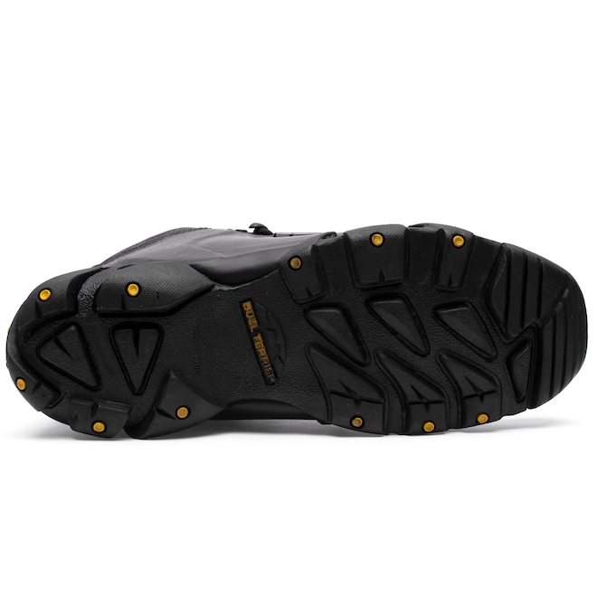 O solado emborrachado possui a tecnologia Power Grip, para maior agarre e aderência em diferentes tipos de terreno.