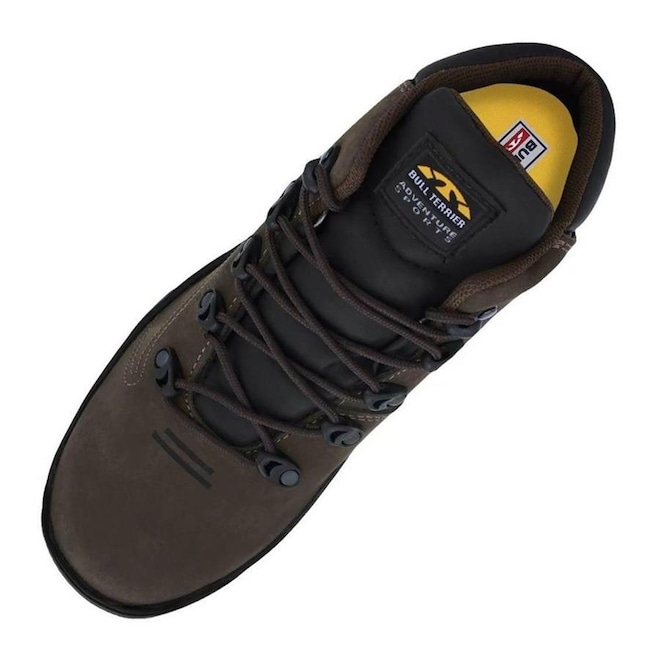 Sua aventura por trilhas e montanhas ganhará mais estilo e conforto com a Bota Bull Terrier Masculina Bob Cat.O cabedal produzido em couro promove mais qualidade e resistência.