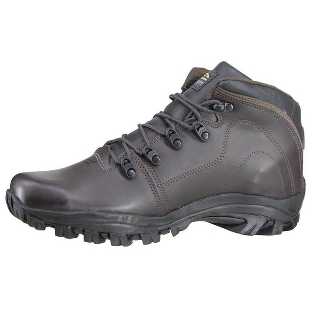 Possui um designer arrojado e moderno, e conta com cabedal confeccionado em couro, tem sua palmilha em EVA duplo com formato extra macio e tecido bactericida, solado com a tecnologia rubber que garante mais aderência ao caminhar em terrenos acidentados, conta também com fechamento em cadarço para mais ajuste e segurança.