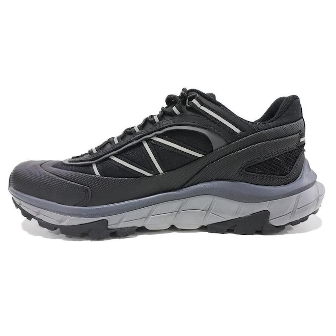 Cabedal: Em couro premium, forro acolchoado e amarração firme.