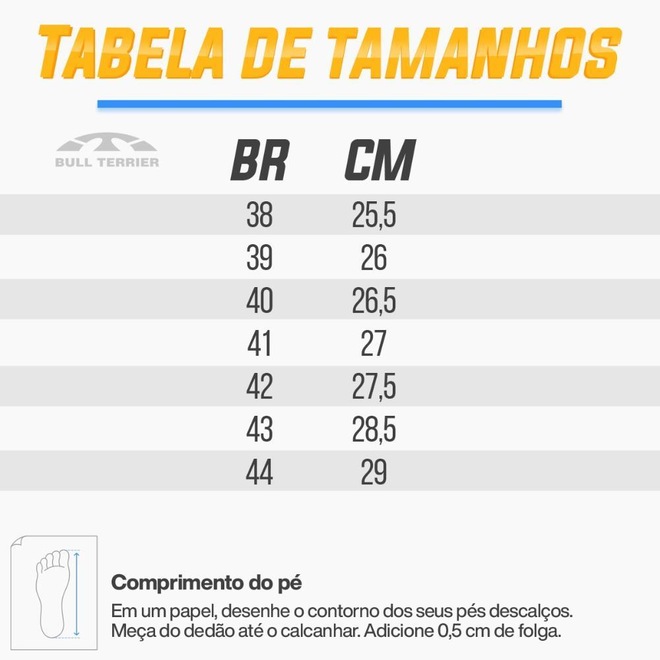 Já o solado de borracha com excelente durabilidade garante alta resistência à abrasão, e possui ranhuras elevadas que oferecerem melhor fixação no solo.