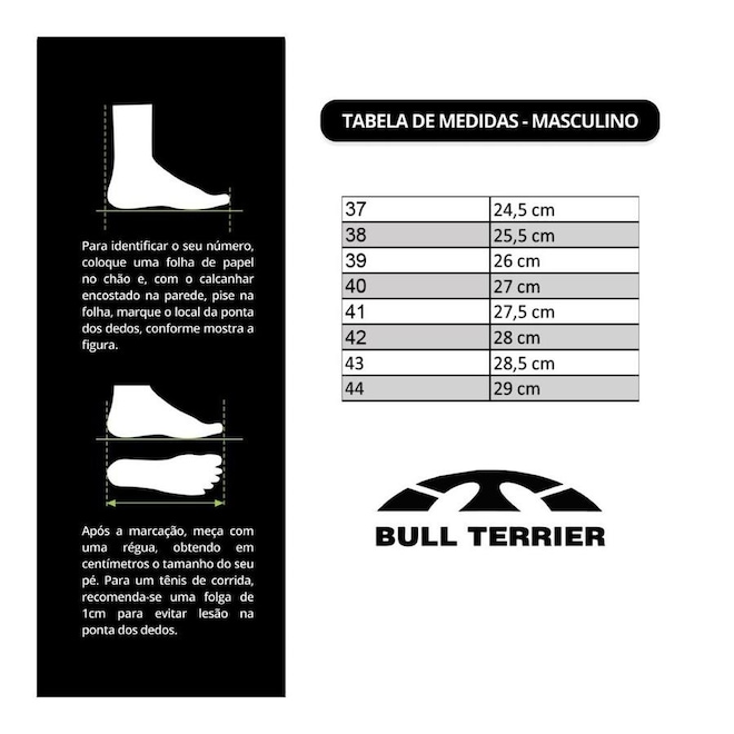 Solado: Em borracha resistente. Garantia do Fabricante: Produto original, com garantia de até 90 dias contra defeito de fabricação. Origem: Nacional Marca: Bull Terrier