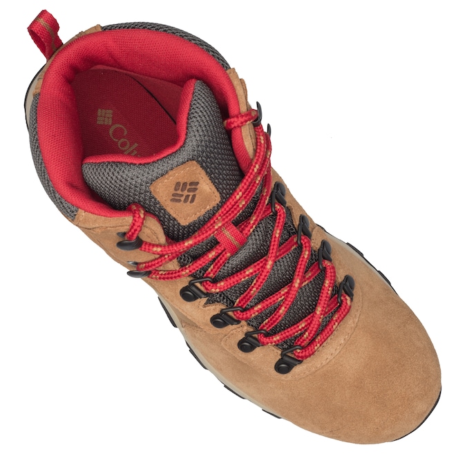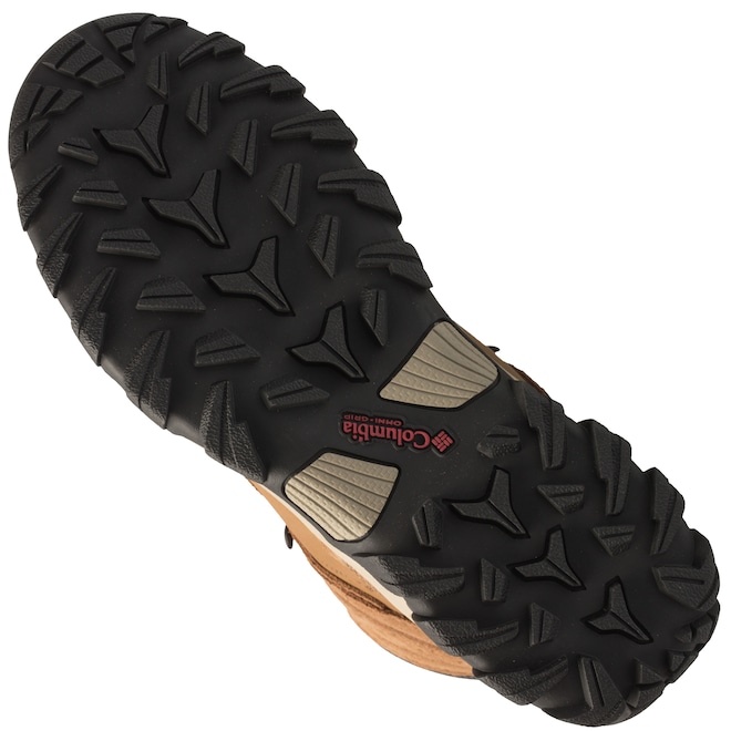 Já o puxador em tecido no contraforte traseiro facilita o encaixe e retirada da bota de aventura Columbia.