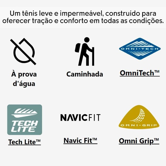 - Omni-Tech? elimina água e libera o excesso de calor com materiais respiráveis ??de múltiplas camadas, para que seus pés permaneçam secos e confortáveis ??em condições úmidas