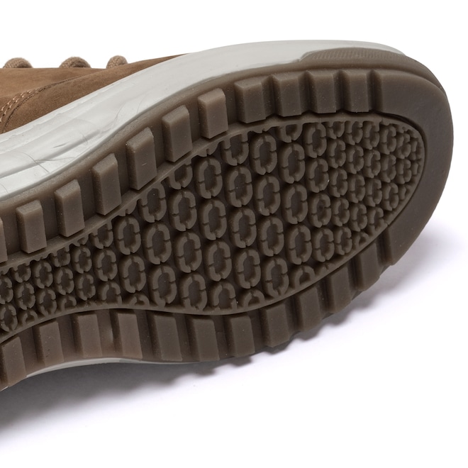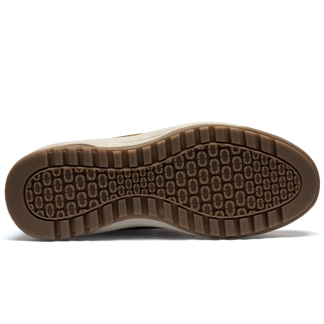Seu cabedal (parte superior do calçado) em couro, com entressola emborrachada e solado borracha.