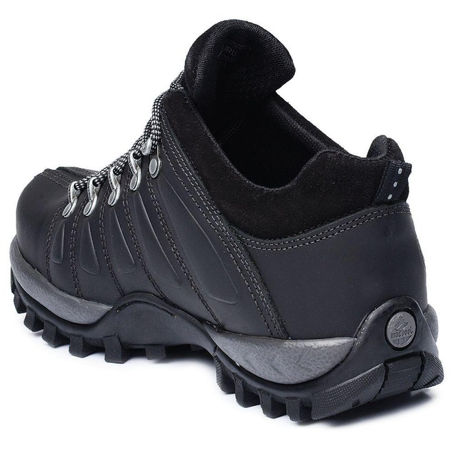 Solado: Borracha tratorada para maior tração e aderência em terrenos acidentados com o logo/nome da marca.