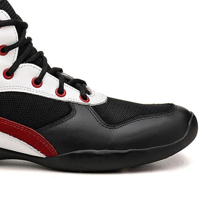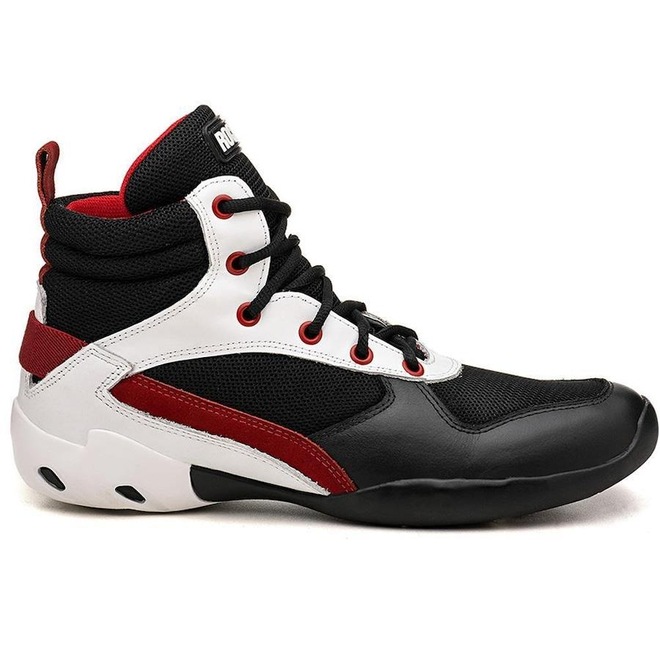 Uma homenagem à um dos maiores nomes do Fisiculturismo, "Flex Wheeler", esta é uma Bota de Treino moderna, resistente e versátil, ideal para musculação, além de outros esportes que exigem estabilidade e foco.Um estilo de tênis para academia que vem se popularizando a cada dia, que além de ideais para treinar deixam o seu look completo.Confeccionada em couro legítimo a durabilidade, com palmilha anatômica em PU esta bota de treino vai te surpreender, com a estabilidade e a segurança que o solado em borracha proporciona nos exercícios que exigem mais de você.Leve seu treino a sério com a Rock Fit e confira estilo dentro e fora das academias.Descrição:Cabedal: Couro e Nylon.Solado: Borracha / AntiderrapantePalmilha: PU 10 mmFechamento: CadarçoCor: Branco, Preto e VermelhoMarca: Rock FitOBS: Pode haver alterações de tonalidades de cor na imagem, Fotos Ilustrativas.ref: M14SWB