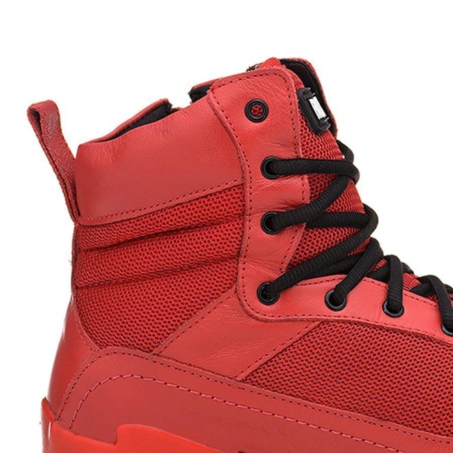 Bota de Treino Masculina Rock Fit Challenger em Couro VermelhoUma Botinha de Treino Versátil e Resistente para te acompanhar nos seus treinos de musculação, funcional, cross ou qualquer outro desafio. Baseado na Botinha Fitness Work Out este tênis para academia vem reformulado com nosso solado exclusivo Rock Fit e cores ainda mais modernas para estar com o look impecável na academia.Nesta Bota de treino temos a novidade de um zíper lateral para agilizar ainda mais a vida de quem não pode perder tempo e busca agilidade no dia a dia.Resistente, confortável nossa bota de treino não é apenas um tênis para malhar, é sua companheira no dia a diabpara alcançar seus desafios.Confeccionada em couro legítimo, tem a durabilidade e a resistência que uma bota de treino precisa. O Seu solado em borracha lhe proporciona estabilidade e a máxima tração sem comprometer a velocidade e mobilidade nos exercícios mais intensos; um tênis para malhar perfeito.Leve seu treino a sério com a RockFit e confira estilo dentro e fora das academias.Descrição:Cabedal: Couro e Nylon.Solado: Borracha / AntiderrapantePalmilha: PU 10 mmFechamento: Cadarço + VelcroCor: VermelhoMarca: Rock FitOBS: Pode haver alterações de tonalidades de cor na imagem, Fotos Ilustrativas