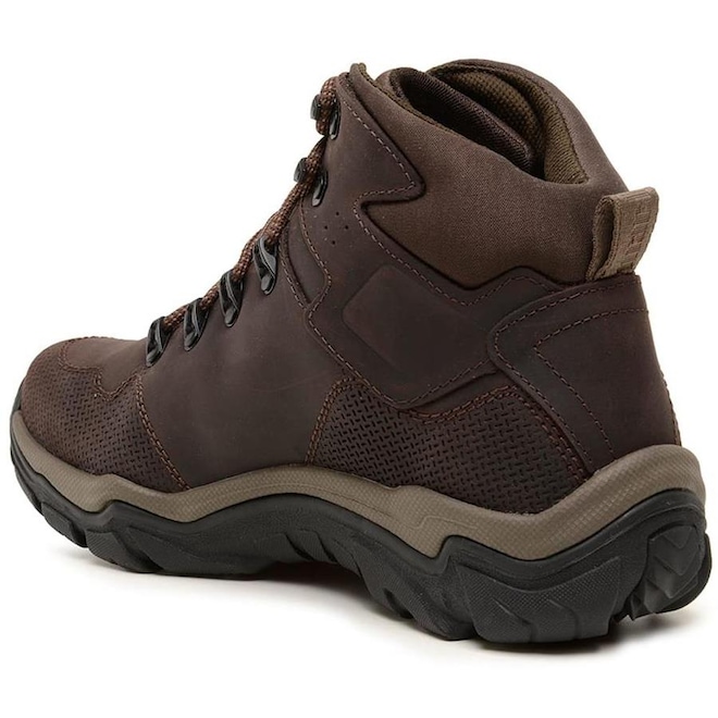 - Solado - Composto por um tapete de borracha com lugs dimensionados para aderência em diversos terrenos, inclusive em terrenos lisos, onde pequenos frisos em seu desenho ajudam no escoamento da agua e garantindo o contato integral no solo. Conta com uma resistência a abrasão de 150mm³, valor este dentro da recomendação para calçados de alto uso.