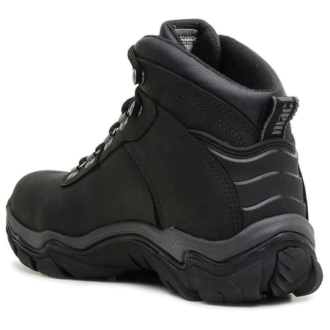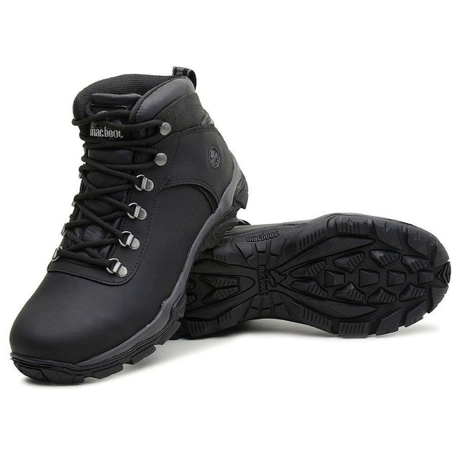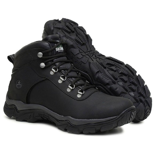 Solado - Seus desenhos proporcionam um amplo apoio ao solo e distribuição do peso através de sua compensação de salto e planta, resultando em conforto adicional em um solado robusto em borracha de alta resistência a abrasão de 150mm³, valor este dentro da recomendação para calçados de alto uso.