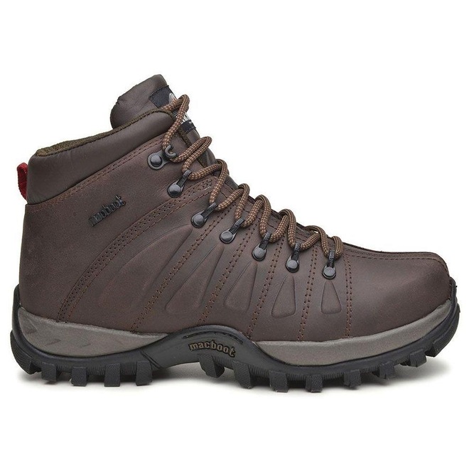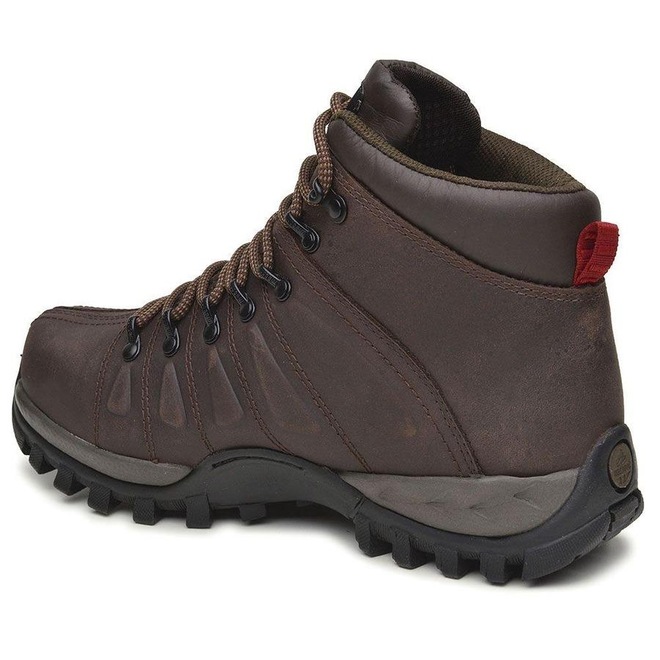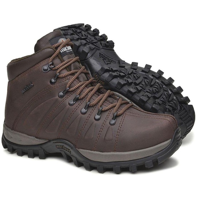 Solado: Borracha tratorada para maior tração e aderência em terrenos acidentados com o logo/nome da marca.