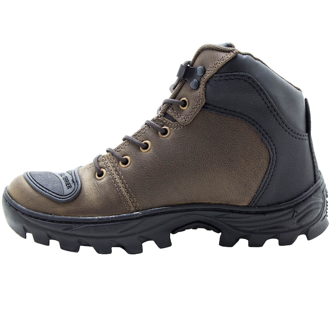 Se você curte trilhas e esportes de aventura, então você deve apostar na Bota Bull Terrier Valmet Moto, um calçado que atribui conforto e proteção para suas atividades. Esta é feita em couro de alta resistência, principalmente para dias de inverno, com chuva e umidade, lhe garantindo extrema segurança. A palmeia Ortho Comforto consegue manter seus pés secos, pois fornece excelente respirabilidade, lhe causando sensação de bem-estar. Já o solado é projetado em borracha de alta durabilidade, com a ajuda da tecnologia Power Grip, ótimo para solos irregulares lhe garantindo muito mais liberdade para encarar as trilhas ou até mesmo para o dia a dia.