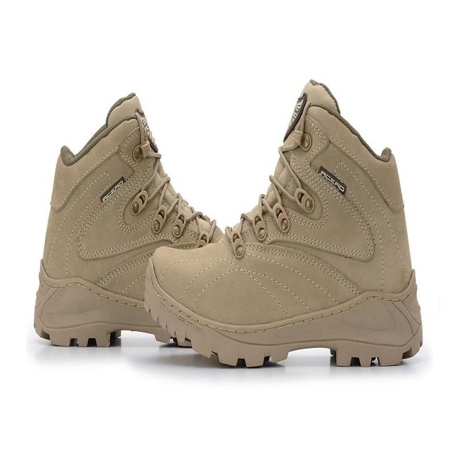 Forro: Confratec air de gramatura de 220 gramas com tratamento anti-bacteriana e anti-fungos Reforços no bico e traseira: Termoplástica de 2,5 mm tramado frente e verso Atacadores: Poliamida de 2,1 cm Passadores: Nylon anti ferrugem Solado: Acero ultra ruber feito em borracha anti-derrapante resistente a calor de 240 graus