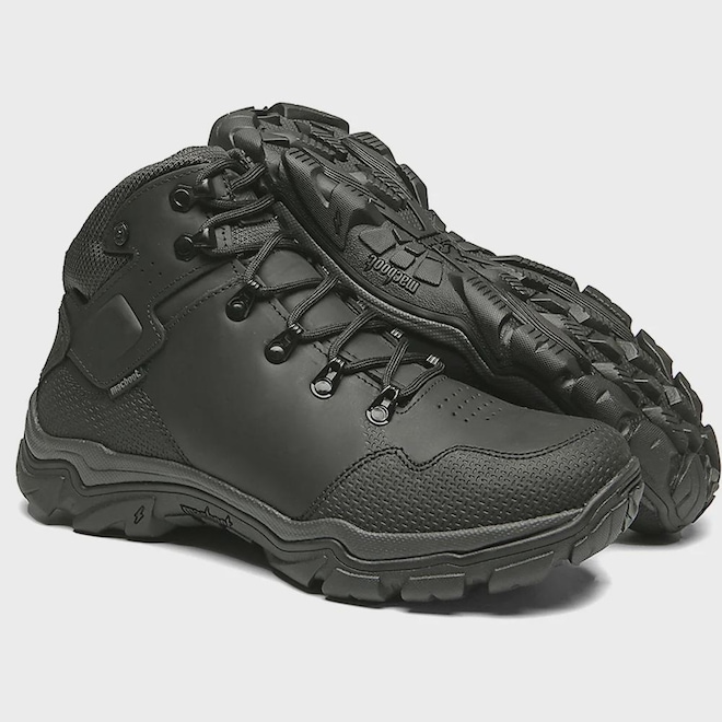 - Solado - Composto por um tapete de borracha com lugs dimensionados para aderência em diversos terrenos, inclusive em terrenos lisos, onde pequenos frisos em seu desenho ajudam no escoamento da agua e garantindo o contato integral no solo. Conta com uma resistência a abrasão de 150mm³, valor este dentro da recomendação para calçados de alto uso. O conjunto solado também compõe uma entressola de EVA (Etileno Acetato de Vinila), para absorver os impactos pesados de uma caminhada ou trilha transformando em conforto. Para maior estabilidade temos um elemento interno em material ABS, o mesmo utilizados em capacetes. Tem a função de evitar torções e estruturar todo o conjunto borracha e EVA.