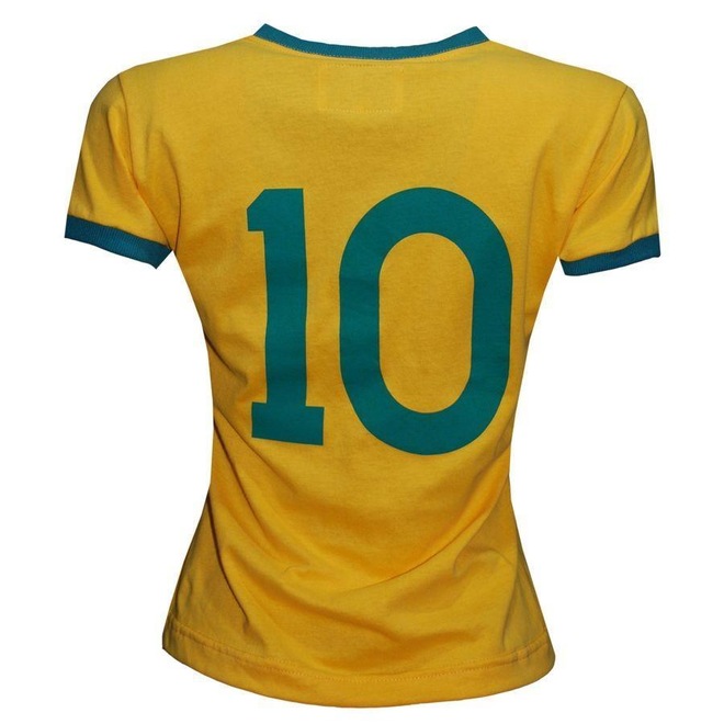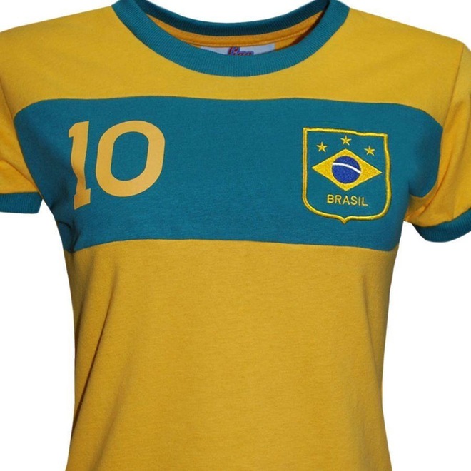 - Sobre o produto - Camiseta do Brasil Faixa Feminina - Liga Retro- Escudo bordado no peito esquerdo Faixa cortada na altura do peito Número 10 aplicado na frente e nas costas Qualidade Liga Retrô Visual Retrô Tecido 100% algodão premium - ref: M144PA