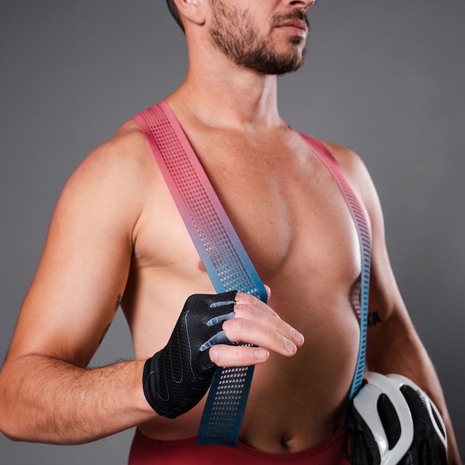 Fabricado com o tecido Carbon Skin, composto por fibras nobres de poliamida e elastano, o bretelle se adapta perfeitamente ao corpo, oferecendo compressão ideal e liberdade de movimento.