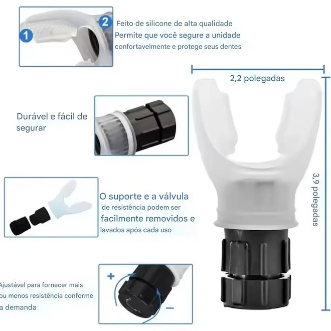• Treinamento de Respiração :Projetado para treinar a respiração, este dispositivo ajuda a melhorar a sua capacidade respiratória e a sua saúde geral.