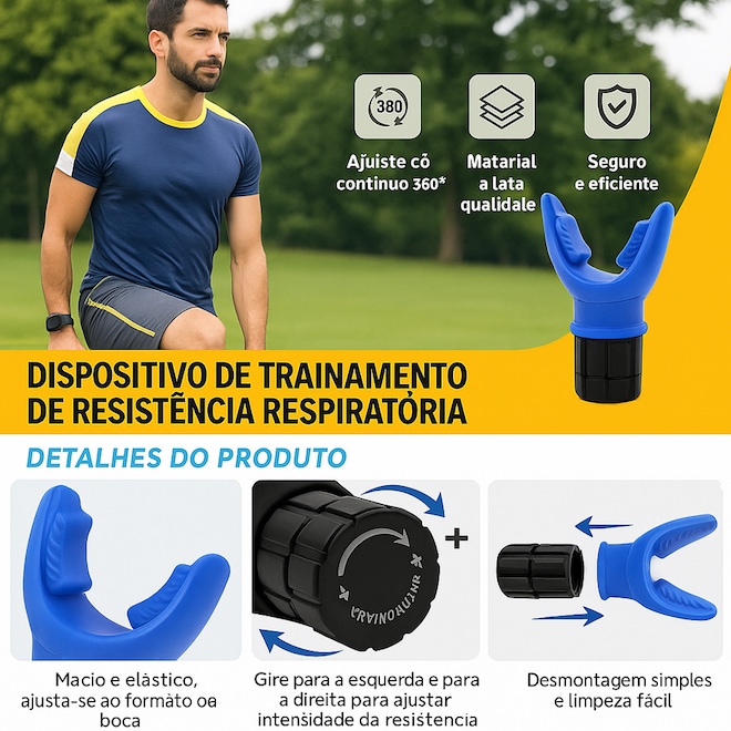• Treinamento de Respiração :Projetado para treinar a respiração, este dispositivo ajuda a melhorar a sua capacidade respiratória e a sua saúde geral.
