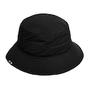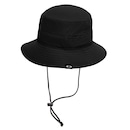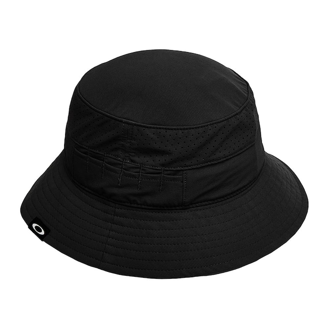 Chapéu Oakley com aba larga, corda ajustável com regulador, furos a laser e etiqueta da bandeira Oakley de tecido na aba.