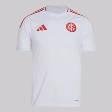 A camisa II do Internacional 2025, criada pela adidas, celebra os 50 anos do primeiro título nacional do clube. Em poliéster branco, traz o escudo retrô bordado, Três Listras vermelhas nos ombros e estampa com bolinhas que formam a icônica Taça das Bolinhas. Detalhes como a assinatura especial, o se