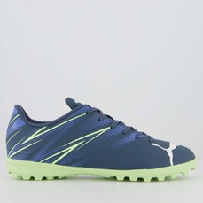 Chuteira Society Puma Attacanto Tt Bdp - Adulto Composição cabedal (parte superior): Material sintético reforçado Palmilha: EVA e removível; facilita o momento da higienização Forro: Revestimento em têxtil com acolchoamento no calcanhar Solado: Borracha com micro travas fixas Cor predominante: