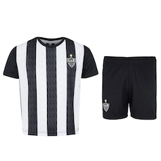 Kit Uniforme Infantil Atlético-MG Braziline: A Paixão Alvinegra para seu Pequeno! Vista seu campeão mirim com o Kit Uniforme Infantil Atlético-MG Braziline ! Ideal para o dia a dia e para vibrar em cada jogo do Galo , este kit em poliéster leve, com gola careca canelada e cós elástico, oferece confo