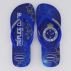 Chinelo Havaianas Cruzeiro - Masculino Gênero: Unissex Clube: Cruzeiro Origem: Nacional Escudo: Estampado Indicado para: Casual Cor predominante: Azul Tira: Divisora de dedos Composição tira: Material sintético Composição solado: EVA antiderrapante Peso aproximado: 310g o par n° 39-40