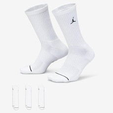 Kit de Meias Cano Alto Jordan Everyday - 3 Pares - Adulto A sua meia perfeita para o dia a dia, macia e confiável. Tecnologia que absorve o suor mantém seus pés frescos e secos, enquanto uma faixa firme no arco proporciona suporte. Benefícios O amortecimento sob o antepé e o calcanhar ajuda a suaviz