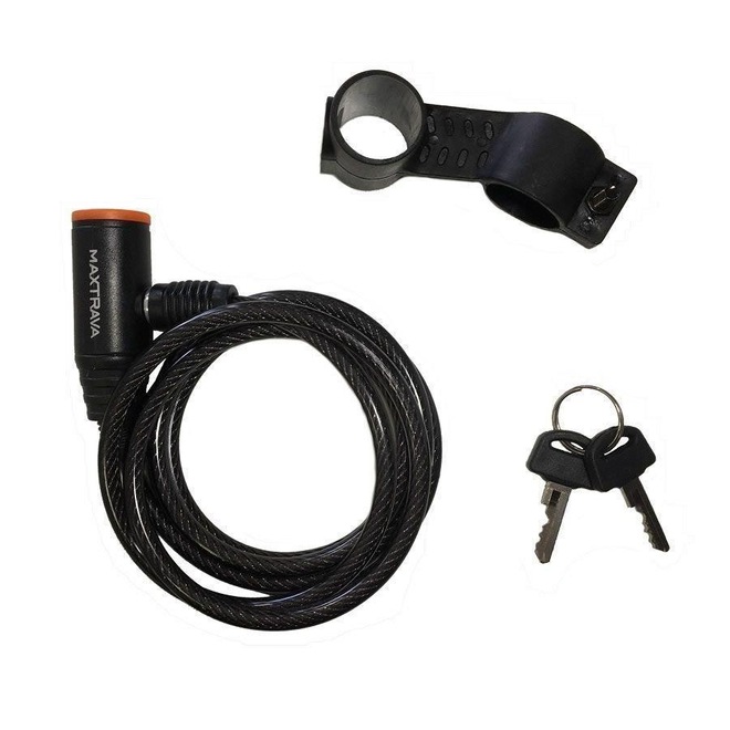 - Sobre o produto - Cadeado com Chave Maxtrava 6 mm x 1500 mmCadeado com chave Maxtrava 6 mm x 1500 mm- O cadeado com chave Maxtrava 6 mm x 1500 mm é um importante acessório para a proteção de sua bicicleta. - Possui sistema interno de alta segurança e cabo de aço com capa protetora contra oxidação. - Fabricado em aço e cobre, o cadeado Maxtrava é resistente e reforçado, dificultando furtos. - Características - Composição: Aço, plástico e cobre
