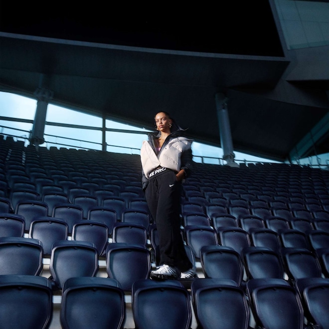 - Logotipo Swoosh bordado na perna esquerda.