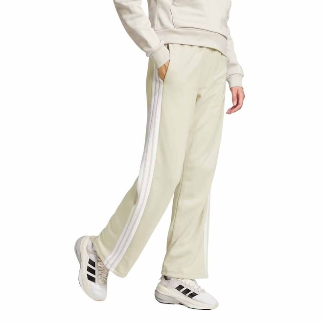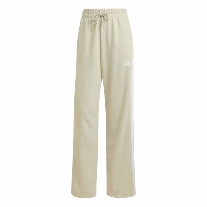 Nome: Calça Adidas French Terry Gênero: FemininoIndicado para: Uso casual Modelagem: Cintura alta, Barras abertasCós: Cós elástico e cordãoComposição: 55% algodão, 36% poliéster (reciclado), 9% viscoseBolsos: Bolsos frontaisMarca: Adidas Código do artigo: JW7177