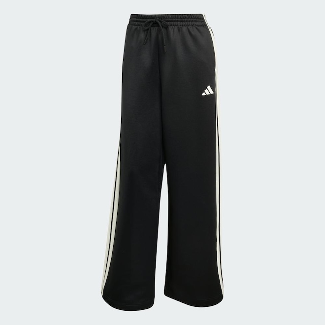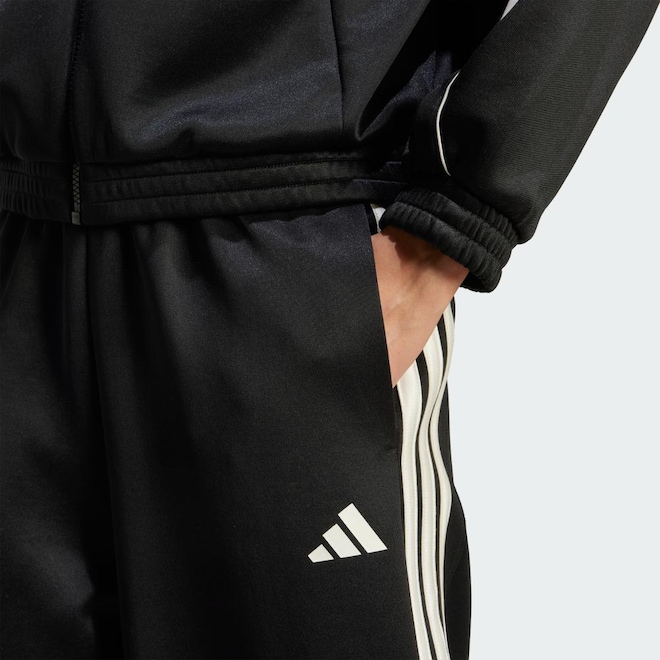 Vista essa calça esportiva da adidas e sinta a energia do jogo, quer você esteja assistindo das arquibancadas ou apenas relaxando no sofá. A estrutura macio e elástica combina com os frisos de cetim para manter seu visual esportivo. A assinatura das Três Listras abaixar nas laterais e o logotipo estampa de borracha fosco finalizam o visual.