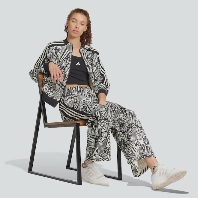 Inspirada nas cores e padrões vibrantes das florestas brasileiras, esta calça esportiva adidas x FARM Rio marca presença. Formas e blocos de cores de inspiração tropical evocam imagens de um oásis no deserto. A modelagem folgada se move livremente para que você possa se manter confortável.