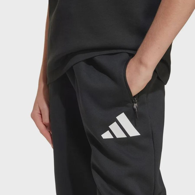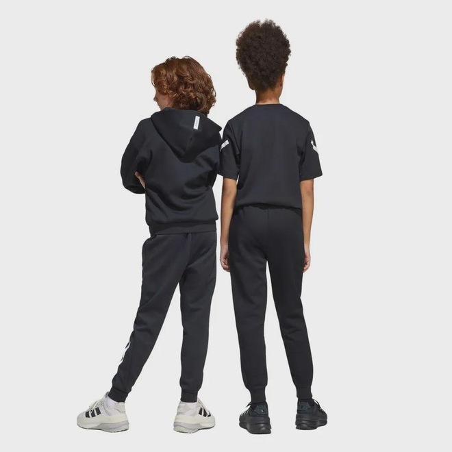 Feita para sair ou praticar esportes, esta calça infantil adidas tem modelagem simples e clássica feita de spacer adidas PRIMEKNIT macio e quente em três camadas. Inspirada no trabalho em equipe e nas linhas do campo de jogo, a estampa emborrachada fosca dá um toque esportivo. Seja qual for a programação do dia, esta calça mantém o espírito de comunidade por perto. Ao escolher o reciclado, somos capazes de reutilizar materiais que já foram criados, o que ajuda a reduzir os resíduos. Detalhes: Forma padrão, cós elástico e cordão, cintura média, bolsos frontais com zíper e barras das mangas caneladas.