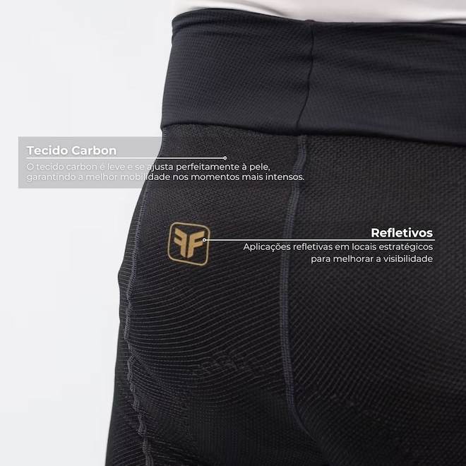 - Tecido Carbon: O tecido carbon é leve e se ajusta perfeitamente à pele, garantindo a melhor mobilidade nos momentos mais intensos.