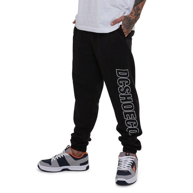 Calça DC Shoes de moletom 240g, bolsos embutidos nas laterais, bolso traseiro chapado, estampa na perna esquerda, cós de elástico interno, cordão de ajuste no cós e barra com ribana.< span>< p>