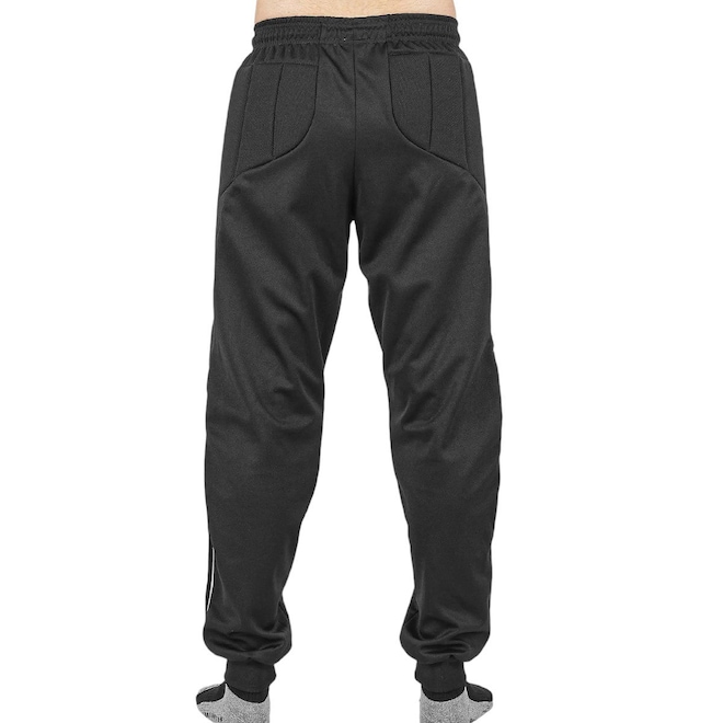 A Calça Poker Goleiro Pro Foom 3 é ideal para suas partidas. Produzida em poliéster, ela oferece conforto e eficiência, o modelo é construído com acolchoamento nas laterais e joelhos. Mais segurança nas quedas das defesas. Possui elástico com cordão interno na cintura para melhor ajuste, elástico também na barra da perna e a tecnologia Extreme Contact, gomos que neutralizam o impacto na hora da queda. Medidas Aproximadas: P 104x31 - M 106x33 - G 108x35 – GG 110x37 cm.