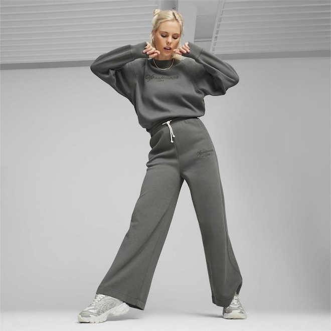 Clássicos são chamados de clássicos por um motivo, porque como esta calça de moletom, são atemporais. Esta calça de corte solto apresenta um bordado gráfico em cores contrastantes Sportswear by PUMA no lado esquerdo. O cós tem cordões arredondados com nós.