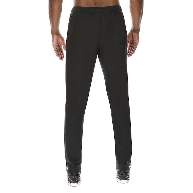Calça em malha de poliéster com modelagem tradicional e pernas ajustadas com fechamento em zíper. Bolso lateral. Logo não refletivo.