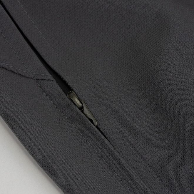 Possui forro com microfuros para ventilação, cintura com elástico e cordão interno, além de bolsos com zíper e barra ajustável com zíper para facilitar o uso com diferentes calçados.