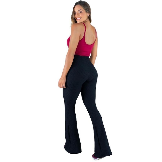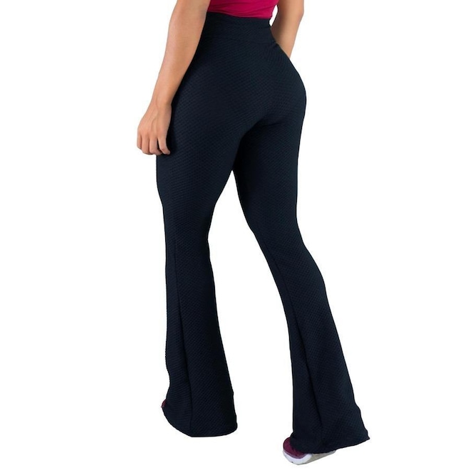 Calça Flare Pantalona Tecido Bolha Cintura Alta Mvb Modas - Feminina
