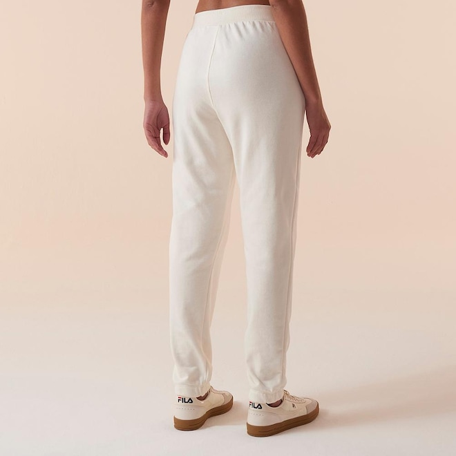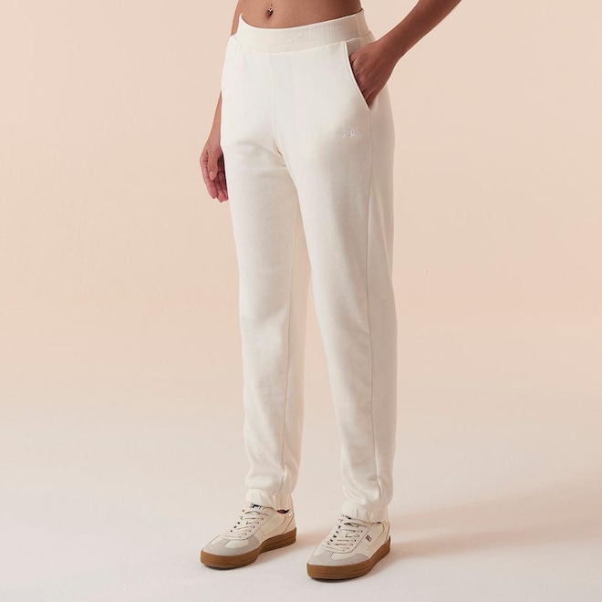 Calça feminina produzida em moletom com toque macio e aconchegante. Com modelagem jogger, possui cós em ribana com elástico interno e punhos tombados com elástico. Os bolsos faca com forro em meia malha de algodão oferecem praticidade e funcionalidade. O bordado FILA Letter no lado esquerdo completa o visual com um detalhe autêntico da marca.