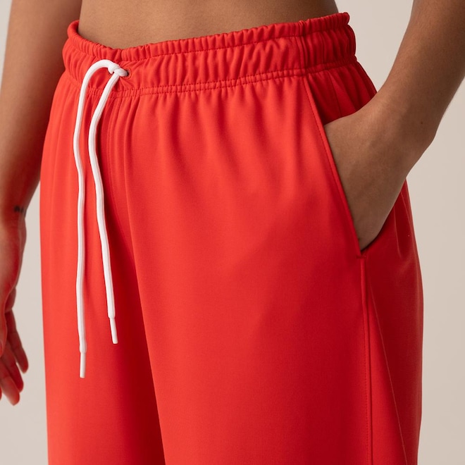 Calça feminina desenvolvida em malha de poliéster com elastano e característica respirável. Sua modelagem comfort inclui cós tombado com ajuste interno em elástico e cordão de algodão, além de bolsos faca reforçados com travetes nas extremidades. O gancho possui pesponto, e os recortes laterais na barra com sobreposição de tecido plano, garantem resistência e estilo à peça.ref: M17NWC