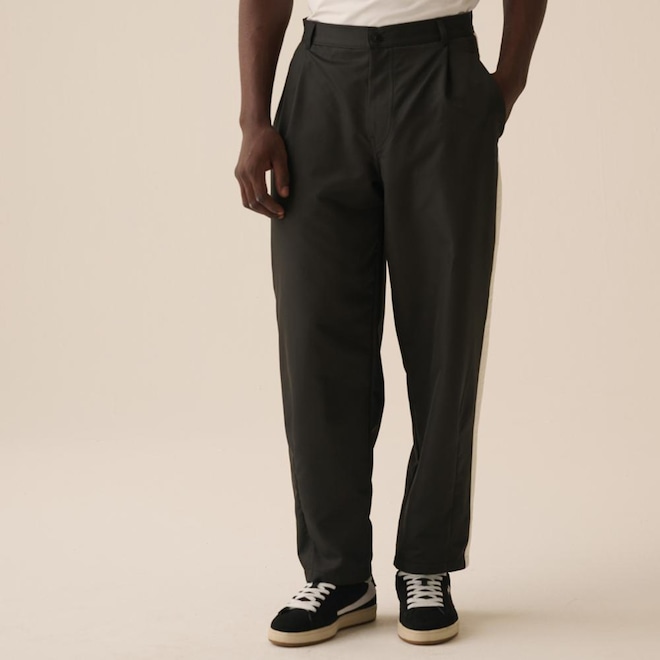 A Calça Masculina FILA Comfort Motor Sport combina estilo e funcionalidade com inspiração automotiva. Feita em poliéster, possui modelagem confortável, braguilha com botão e zíper, cós franzido, passadores e bolsos faca laterais. Detalhes como pregas frontais, recortes contrastantes, patch F-Box no cós, bordado no bolso esquerdo e etiqueta traseira destacam o design esportivo e sofisticado.